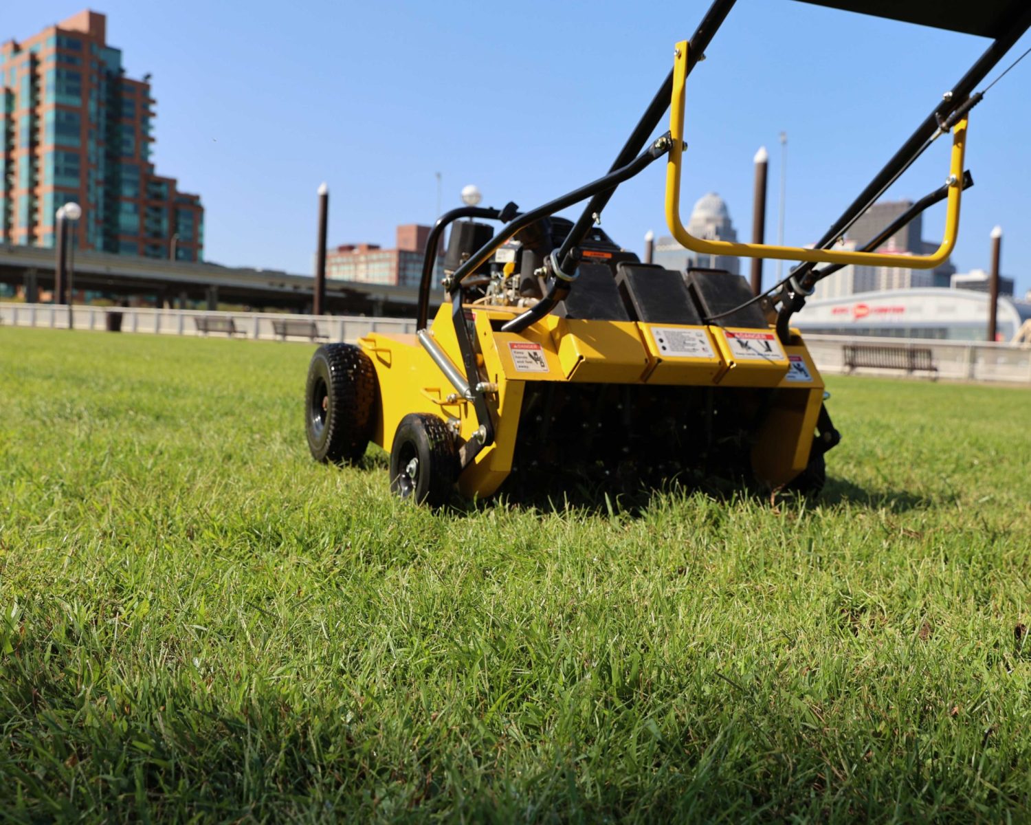 THE EZ-AER FEATURES A HYDROSTATIC DRIVE AND SEGMENTED TINES FOR SMOOTH AND EASY OPERATION.